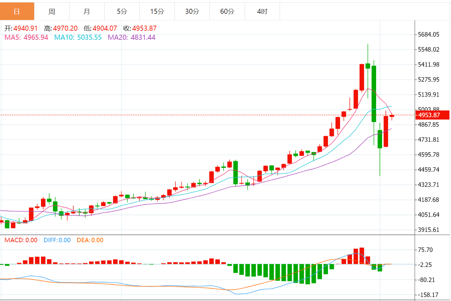 截至2026年2月4日20时50分,国际黄金延续强势反弹态势,伦敦金现报5052.66美元/盎司,日内上涨106.42美元,涨幅2.15%,盘中最高触及5091.13美元/盎司,最低下探4945.16美元/盎司;国内黄金T+D报1132.5元/克,小幅上涨3.1元,涨幅0.27%,