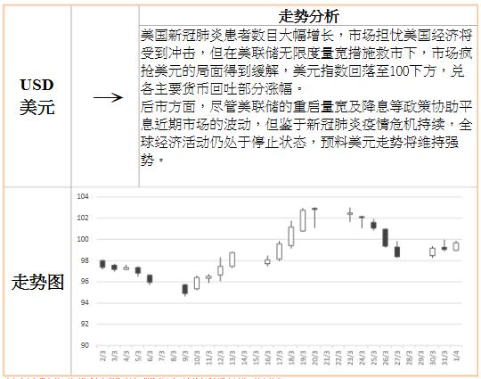 外汇评论 美元在第二季开市波动下向好 美国经济前景转差,美元兑一篮子货币上涨。最近公布的关键数据有所减弱,三月AD职位下跌,而美国I制造业I的细节亦见疲软。美联储于昨晚发布重要声明,将会暂时放宽大型银行的资本要求,这将有助于减轻贷款限制。市场注意力放在今晚公布的申领失业救济数据之上。欧元