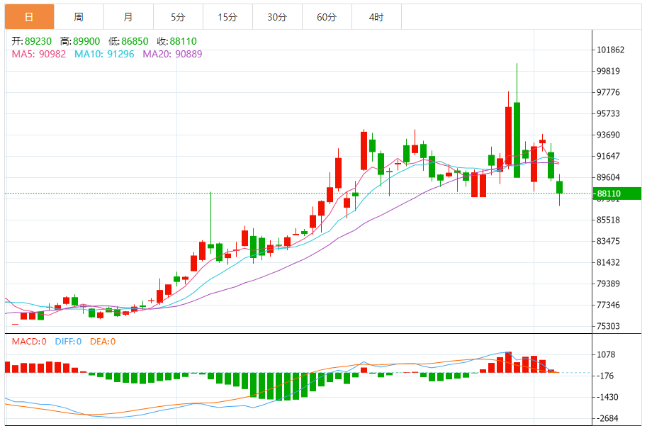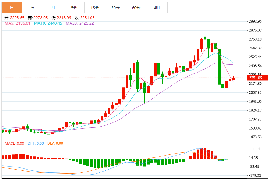 昨日黄金市场早盘开盘在4980.4的位置后行情先拉升给出5024.2的位置后行情强势回落,日线最低给到了4756.9的位置后行情低位区间盘整,日线最终收线在了4782.9后行情以一根上影线稍长的大阴线收线,而这样的形态收尾后,今日的行情回踩空,点位上,本周下方4400的多减仓后止损上移放到4500,今日4855尝试空,