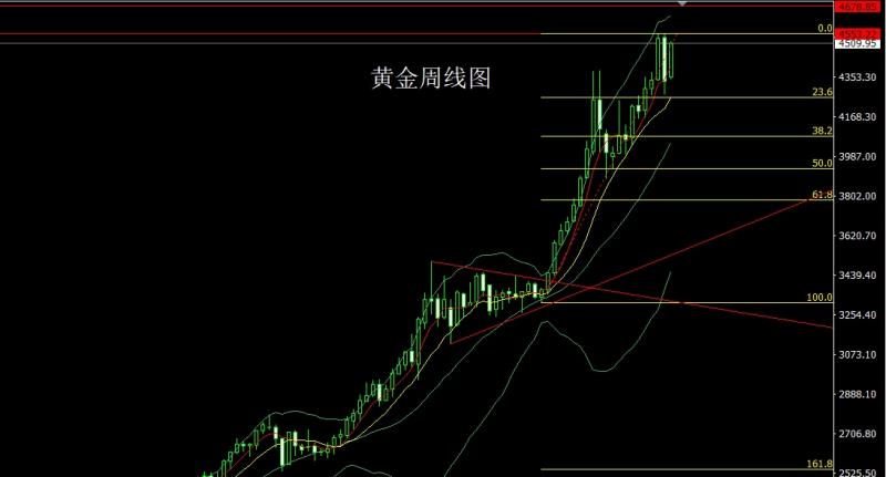 这周突破历史新高后,很快会去到1040~1050一线,甚至是1100~1200,国际黄金隔夜我说,一旦站稳4500上方,回调就是上车的机会,这个观点在上周视频以及晚间直播的时候多次强调! 那么现在要做的就是继续拿住手中的多单,等待历史新高出现!短期上方4600突破之后,将会看到4800,甚至是5000!