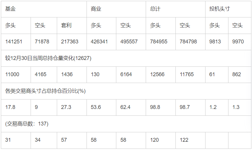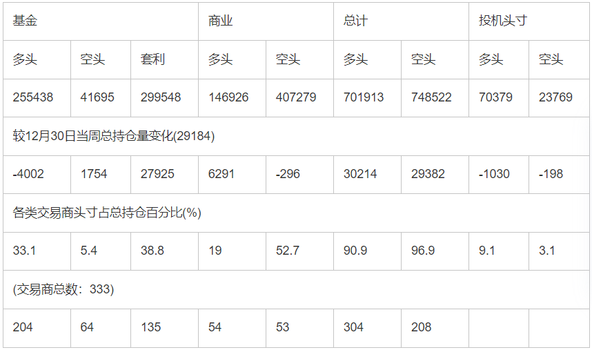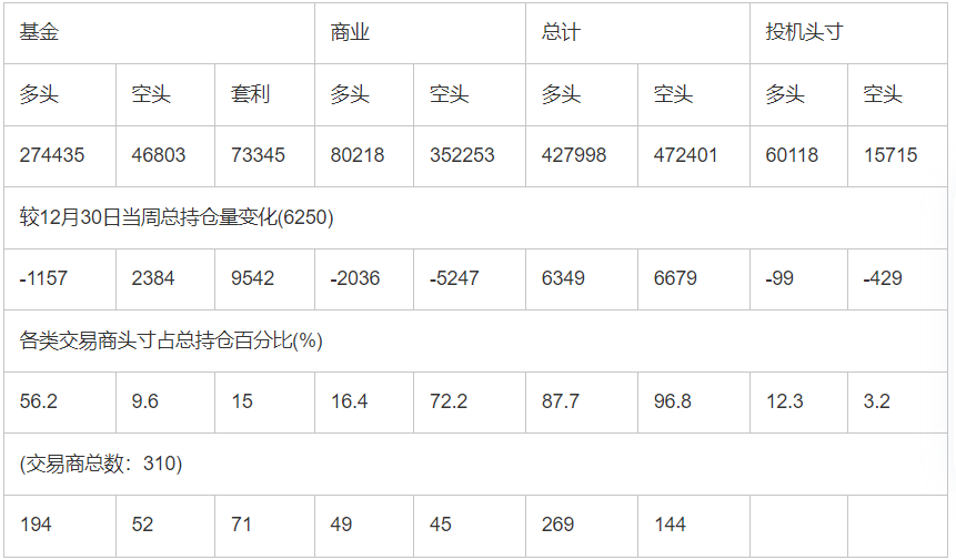 截止1月6日当周洲际交易所(欧洲)原油期货分类持仓报告: 合约单位:(1000桶的合同)总持仓量:794768