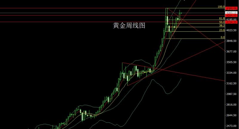 上周黄金市场周初开盘在4197.3的位置后行情先回落,周线最低给到了4169.5的位置后行情在基本面刺激下强势震荡拉升,到周五尾盘周线最高触及到了4354的位子后行情尾盘获利了结回落,周线最终收线在了4300.3的位置后,周线以一根上影线长于下影线的大阳线收线,而这样的形态收尾后,技术上本周依旧有看多需求