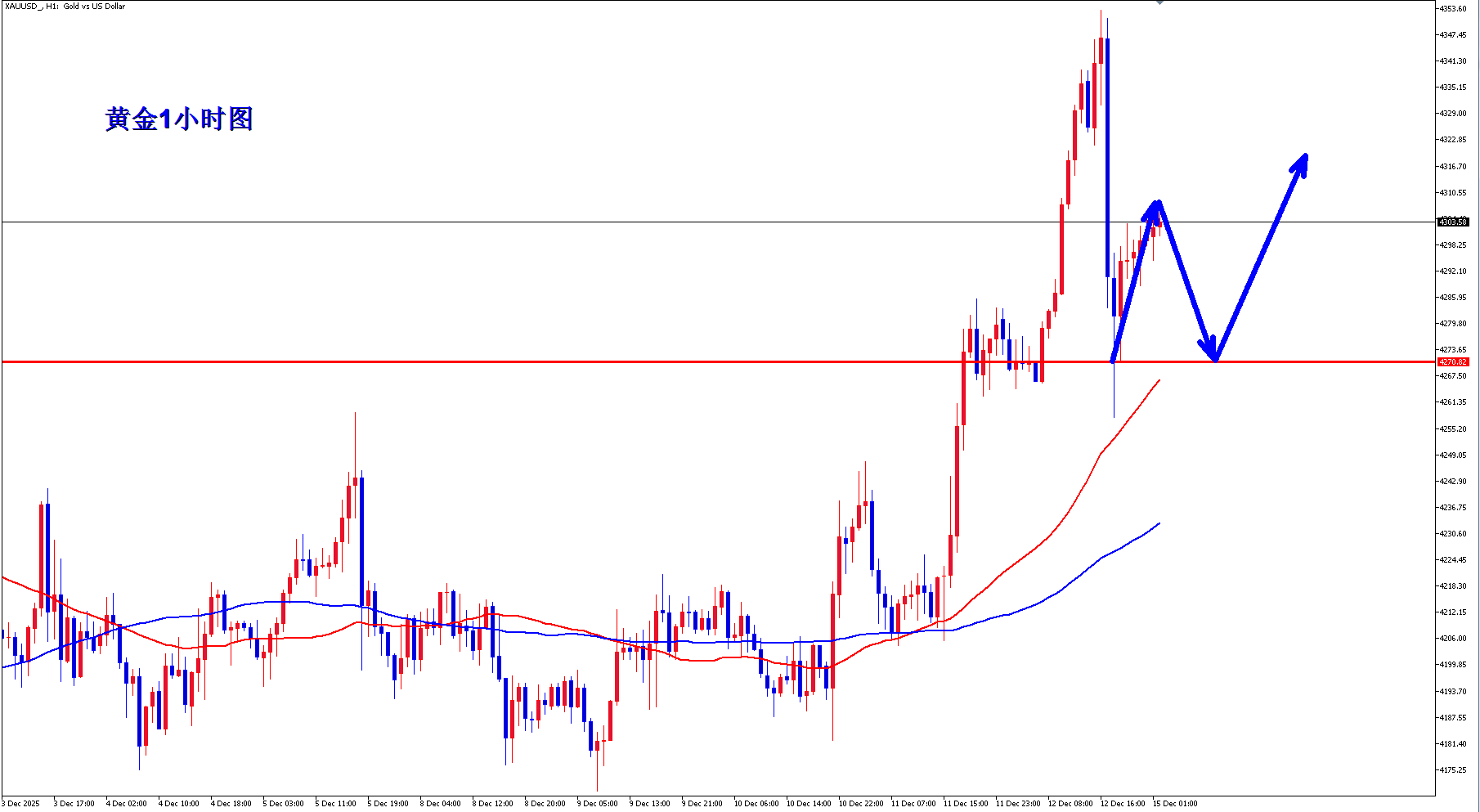 黄金周五距离历史新高仅一步之遥,不过好景不长,黄金多头最终没有坚守住,黄金后半夜空头直接发力,黄金大跳水,快速下跌近100美金,不过黄金多头探底之后,下方承接力也还是很强,再次进行强势反抽,多头还是在不断角逐,那么黄金多头能否再次崛起,今天就很关键! 黄金1小时均线继续金叉向上的