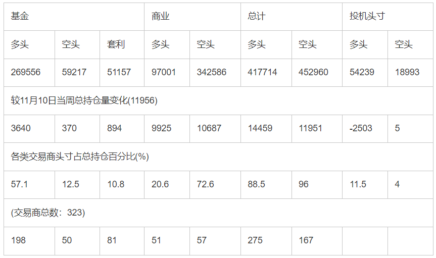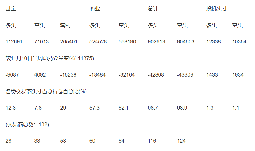 截止11月18日当周洲际交易所(欧洲)原油期货和期权分类持仓报告: 合约单位:(1000桶的合同)总持仓量:914957