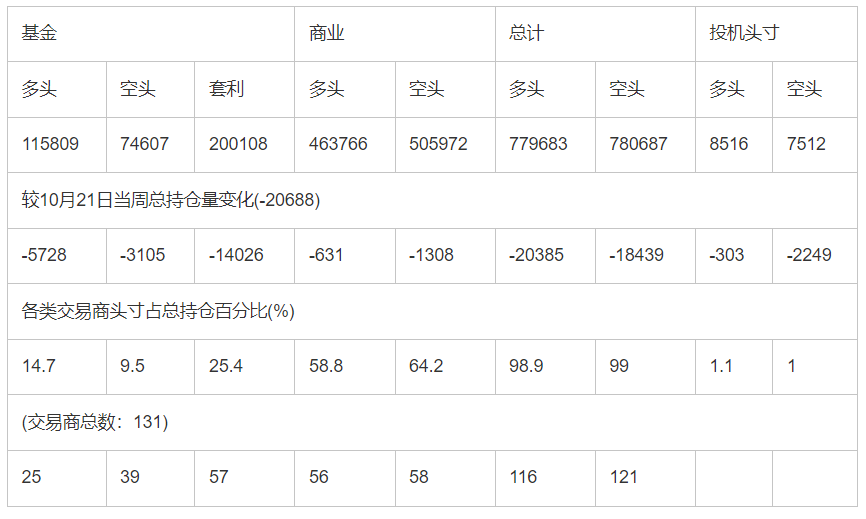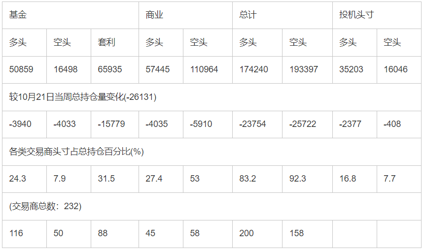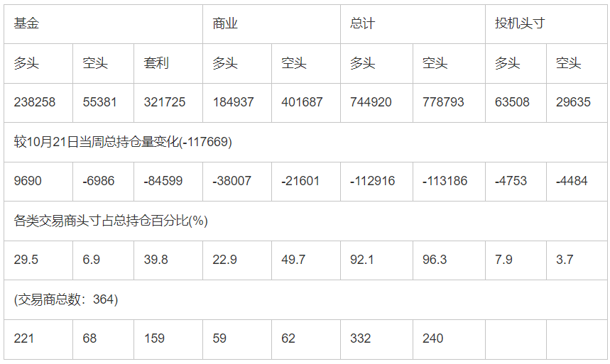 截止10月28日当周洲际交易所(欧洲)原油期货分类持仓报告: 合约单位:(1000桶的合同)总持仓量:788199
