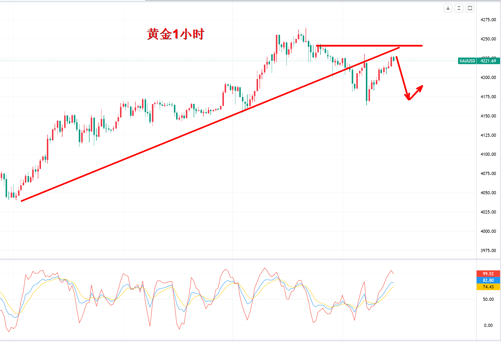 黄金整体还是震荡行情,黄金昨晚小非农利多冲高之后继续回落,黄金4230高空还是如期下跌,黄金高空斩获三连胜,黄金整体还是继续震荡,黄金短线还是继续震荡调整为主,黄金短线要有很深的调整估计也很难。 黄金1小时现在整体还是大区间震荡,下方首先关注4190附近支撑,如果黄金早盘回落4190附近