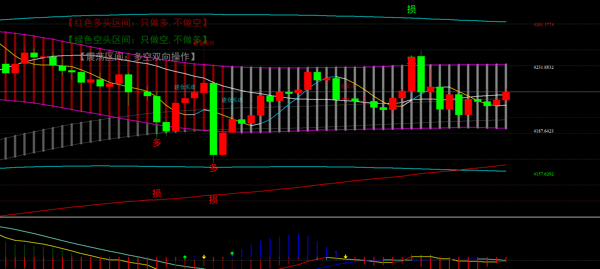 昨天黄金整体还是宽幅震荡,虽然破了4235两次冲40以上,但是两次都出现了空头的高度压制大幅下跌,下边也没有破底,所以还是按震荡来对待,现在上方压制日图与小时图形成共振重叠压制在4232这里,四小时跨度又太大,只有突破以后看下方4166,上方4260-80,所以这个暂时参考意义不大,而30分钟在26附近,下