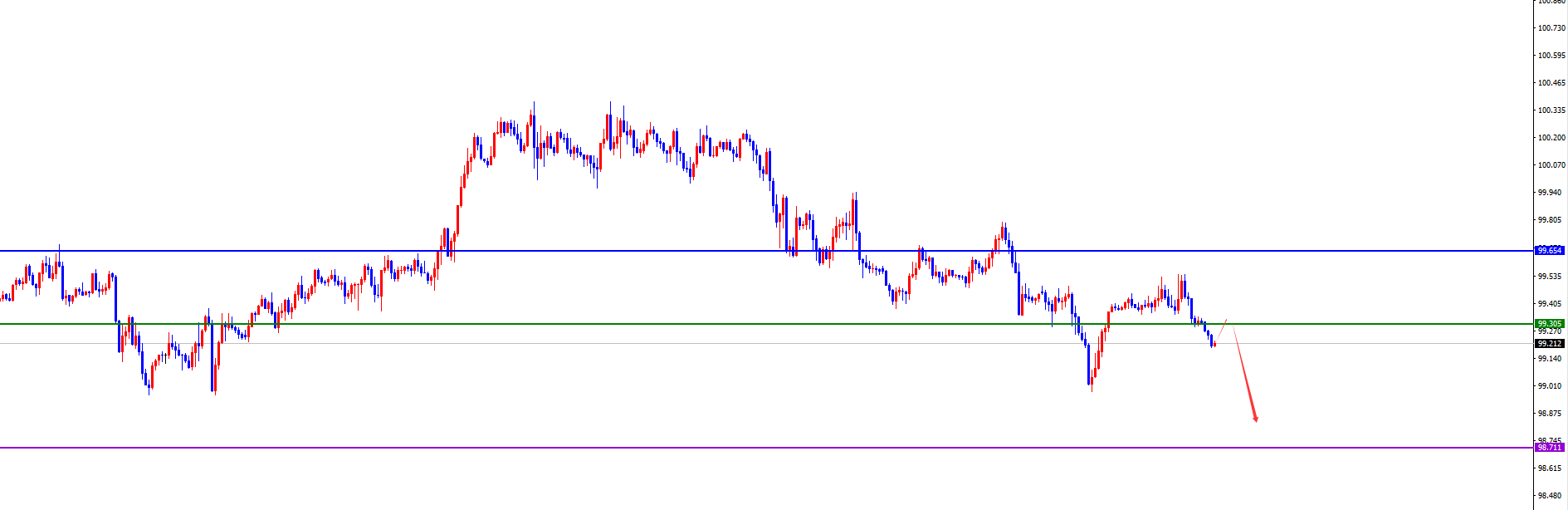 美元指数 月线(长线空)阻力:101.70 周线(中线多)支撑:98.70 日线(波段空)阻力:99.65 四小时(短期) 关键分水岭99.30-40区域,价格没有出现反转信号之前维持空 美元兑日元(UDJY)