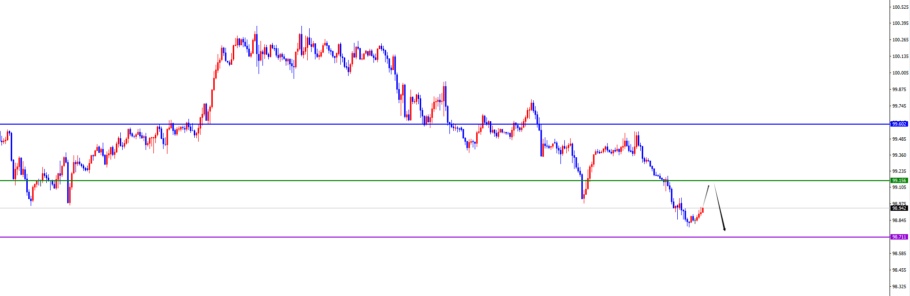 美元指数 月线(长线空)阻力:101.70 周线(中线多)支撑:98.70 日线(波段空)阻力:99.60 四小时(短期) 关键分水岭99.10-20区域,价格没有出现反转信号之前维持空 美元兑日元(UDJY)
