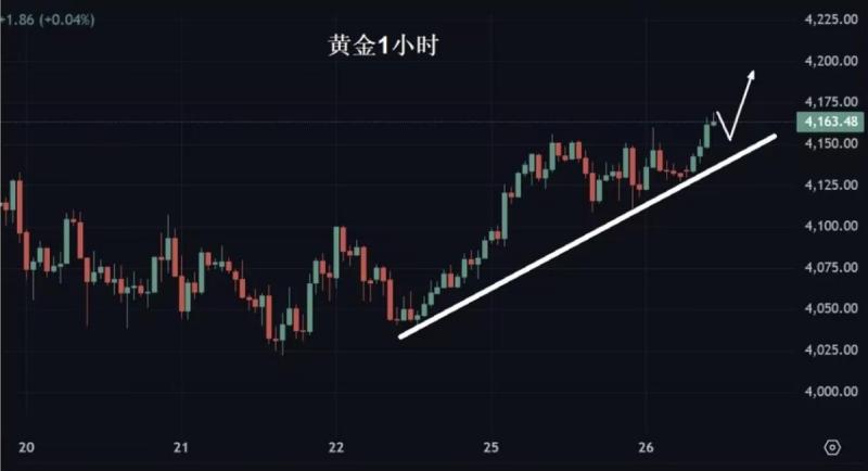 黄金这两天开始震荡上涨,不过整体还是偏强势的,每天都能创个近期的小高点,那么黄金整体还是多头更胜一筹,虽然晃晃悠悠,不过多头也在蓄势发力,那么黄金接下来能突破4200吗 黄金1小时均线还是继续金叉向上的多头排列发散,黄金多头还是有向上空间,黄金1小时昨天美盘数据利空也仅仅是回踩4137