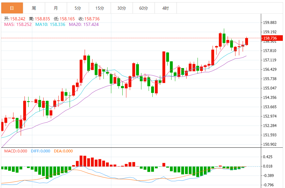 周四(1月22日),美元/日元上涨158.763,暂报158.733,涨幅0.31%。 市场基本面分析 日本央行本周议息,普徕仕多元收益债券策略联席基金经理钟晓阳称,预计日本央行本次议息会议将按兵不动。市场普遍预期加息时间将落在6月或7月,但目前看来日本央行可能较预期提早加息。 钟