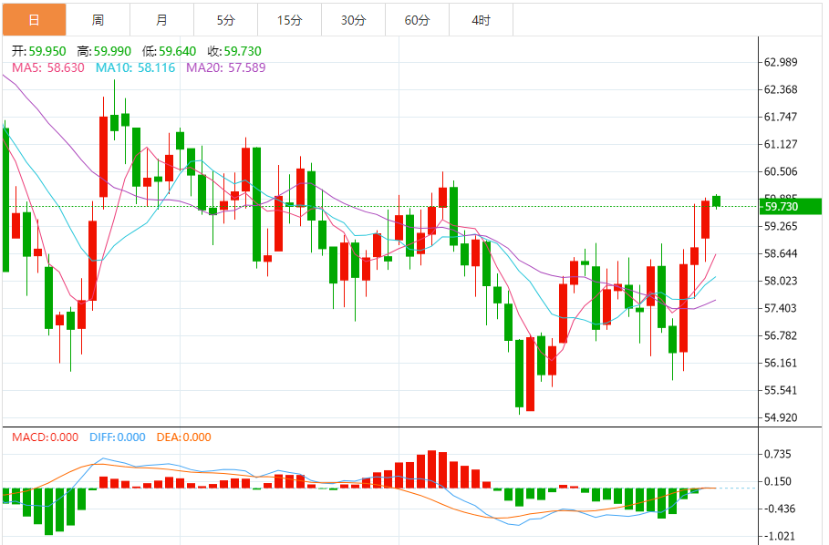 基本消息面 周二,美原油交投于59.69美元/桶附近,短期已经突破均线压力,基本面上伊朗局势持续紧张,引发市场对原油供应中断的担忧。 相关新闻消息 伊朗是OC第四大产油国,日均原油产量约330万桶,一旦出现新的军事冲突,全球原油供应链将面临明显冲击。WTI原油价格昨日一