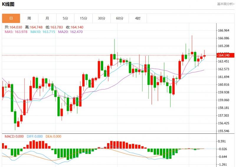 周一盘中,英镑日元报164.198,涨幅0.11%。 今日分析:看涨,当164.00为支撑位。 备选策略:如跌破164,G/JY目标方向定在163.33和162.93。 技术点评:RI技术指标超过50。ACD技术指标呈现看多状态并处在其信号线的上方。此外,价位高于其20天及50天移动平均线(分别位于16
