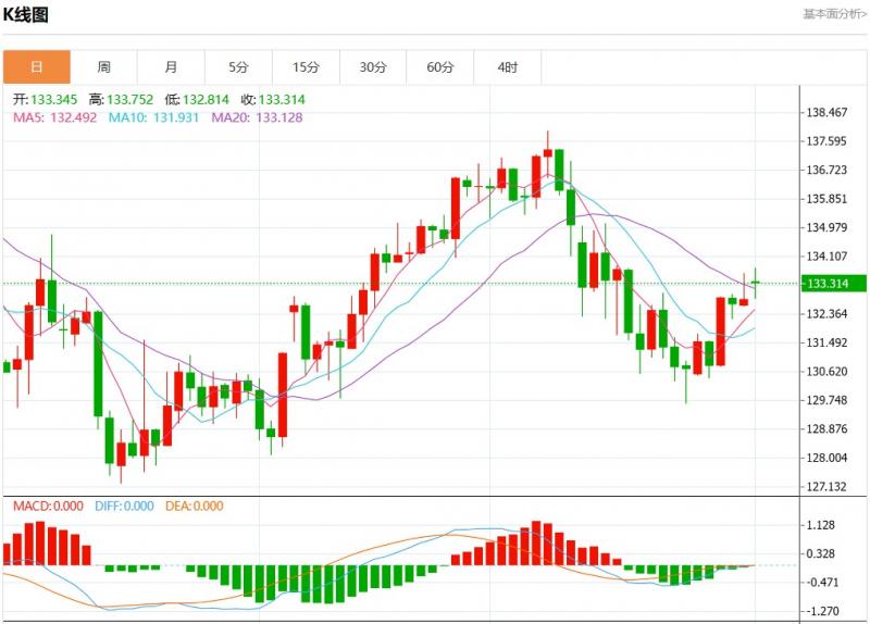 美元兑日元报133。279,涨幅0.37%。 今日分析:在132.65之上,看涨,目标价位为133.85,然后为134.10。 技术点评:RI技术指标向上运行。 支撑位:134.60134.10133.85 阻力位:132.65132.30132.00 (亚汇网编辑