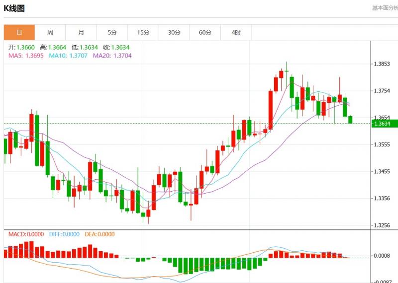 周二盘中,美元加元报1.3634,跌幅0.18%。 今日分析:在1.3675之下,看跌,目标价位为1.3610,然后为1.3590。 备选策略:在1.3675上,看涨,目标价位定在1.3700,然后为1.3730。 技术点评:RI技术指标跌破其30位置。 支撑位:1.37301.37001.367