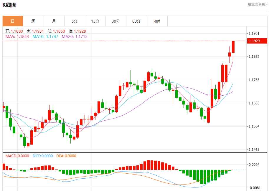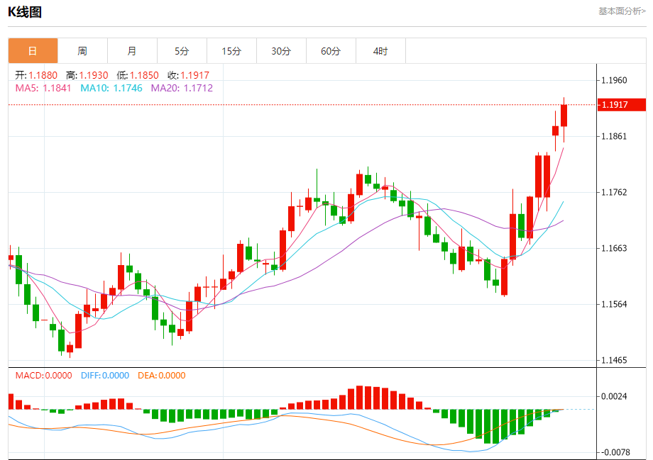 今日周二,截止目前欧元兑美元报1.1913,上涨0.28%。 欧元基本面分析 欧洲央行管委会成员科赫尔表示,鉴于全球形势不稳定,尤其是在贸易方面,欧洲央行需要对利率问题保留所有可行的选项。 尽管官员们认为目前“处境良好”,但仍面临“非常高”的不确定性。他表示,拥有充分