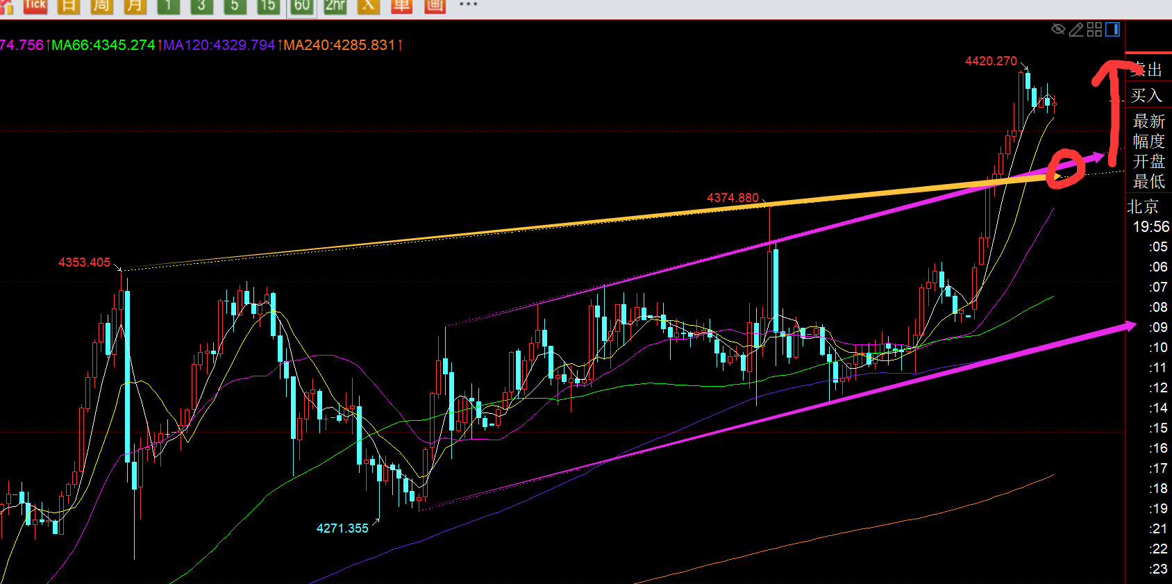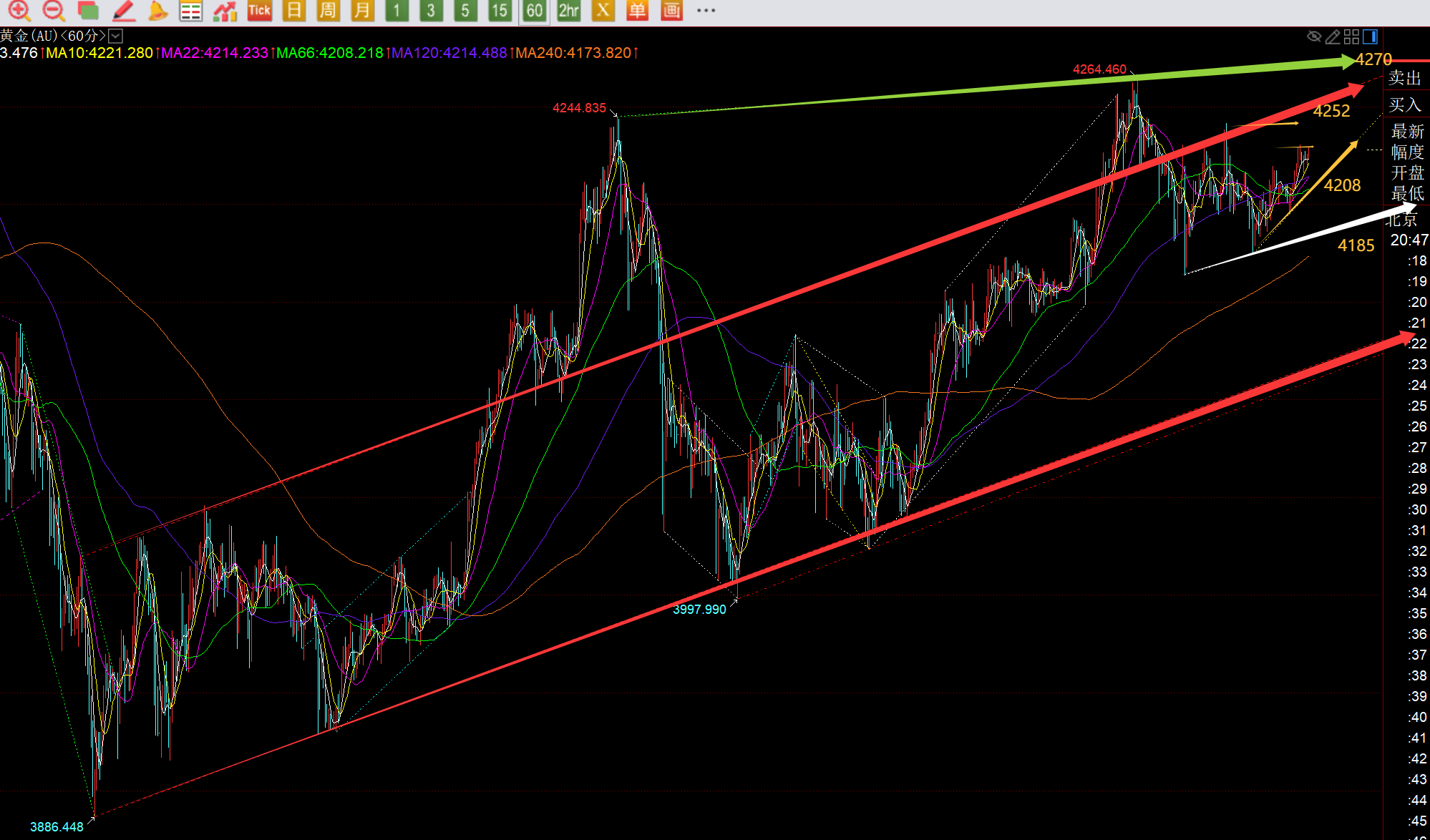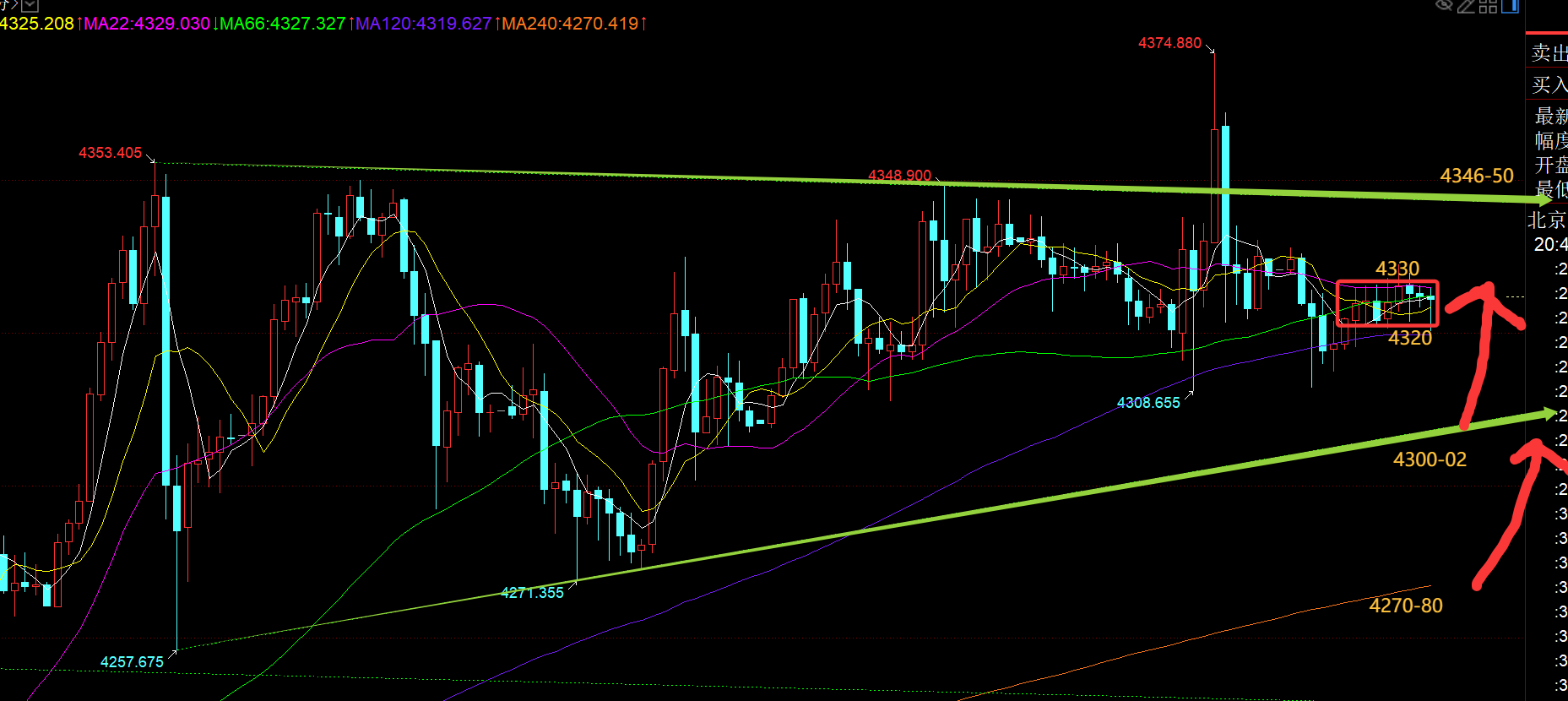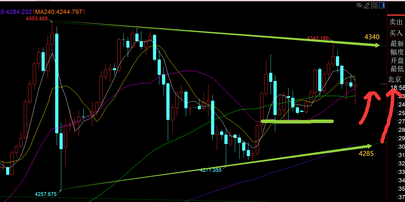 郑氏点银:黄金逐步有趋势单边拉升的味道,欧盘强,今晚跟随看涨 时间关系,今日简单解读: 第一,黄金方面:今天出现了一波强力持续拉升,有效突破站上了上图前期红色通道上轨4292,也就意味着红色通道内的来回整理算结束了,且欧盘持续拉升下,美盘还有二次上涨,今晚能回踩顺势跟随看涨