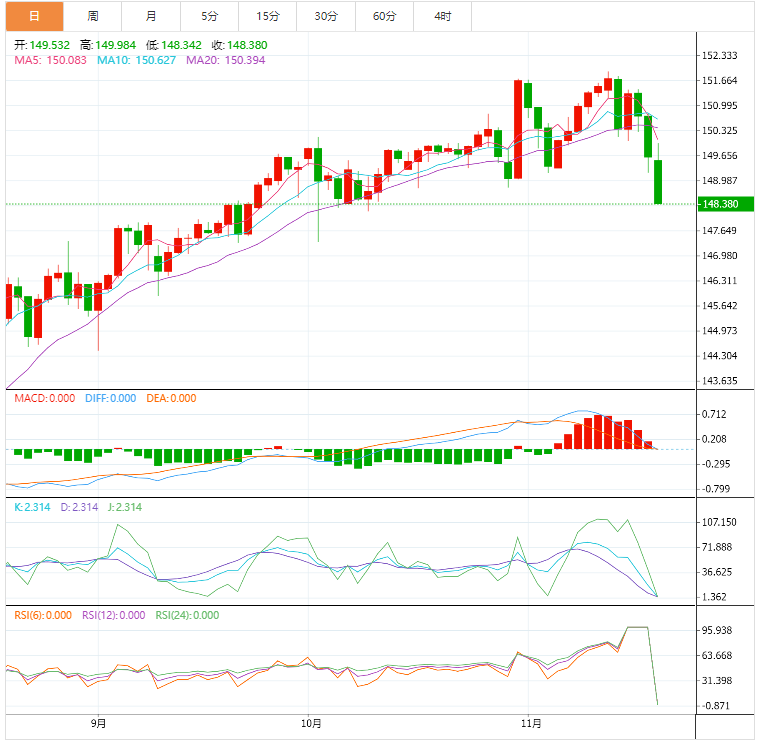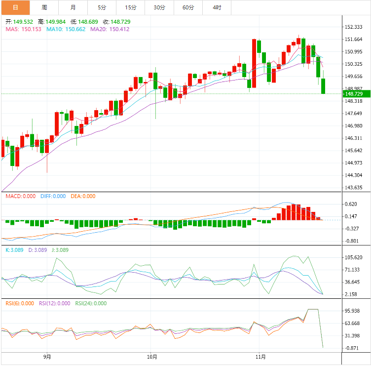 周一盘中,美元兑日元下跌至148.75,跌幅0.59%。 基本面上,美元兑日元继续在六周低点附近交易,延续了周一欧洲早盘在148.90附近的跌幅。148.50主要水平出现,直接支撑位与23.6%斐波那契回撤位148.49对齐。 技术面上,美元兑日元成功达到了我们等待的第一个负面目标149.40,今天开盘时进一步下跌,超过了这个水平