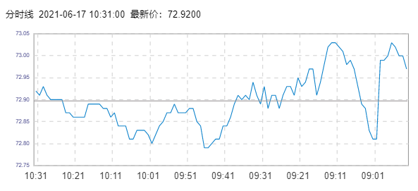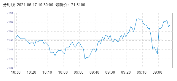 WTI原油价格实时(2021年6月17日) 名称 最新价 涨跌 涨跌幅% 开盘价 昨收价 最高价 最低价 WTI 71.53