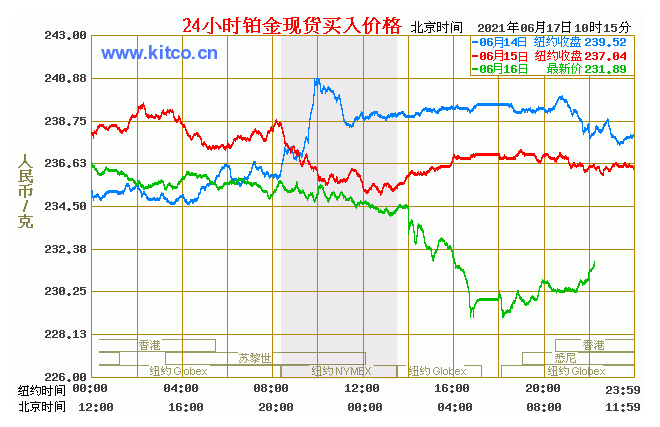 铂金价格走势图今日最新铂金行情(2021年6月17日) 今日最新铂金行情:231.89 备注:以上铂金价格仅供参考,请以官方价格为准。