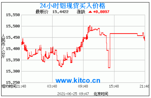 铝锭价格走势图今日最新铝锭行情(2021年6月25日) 今日最新铝锭行情:15.4422 备注:以上铝锭价格仅供参考,请以官方价格为准。
