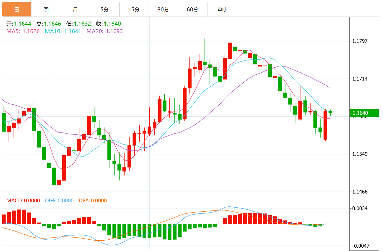 欧元/美元在前一交易日小幅上涨后变动不大,周二欧元在1.1640附近。14天相对强弱指数(RI)动量指标为44(中性至看跌),确认动能减弱。 日线图的技术分析显示,欧元/美元仍低于50天指数移动均线(A),并滑落至九天A之下,保持看跌偏向。短期均线位于中期均线之下,增强了下行压力。 在九天A和50天