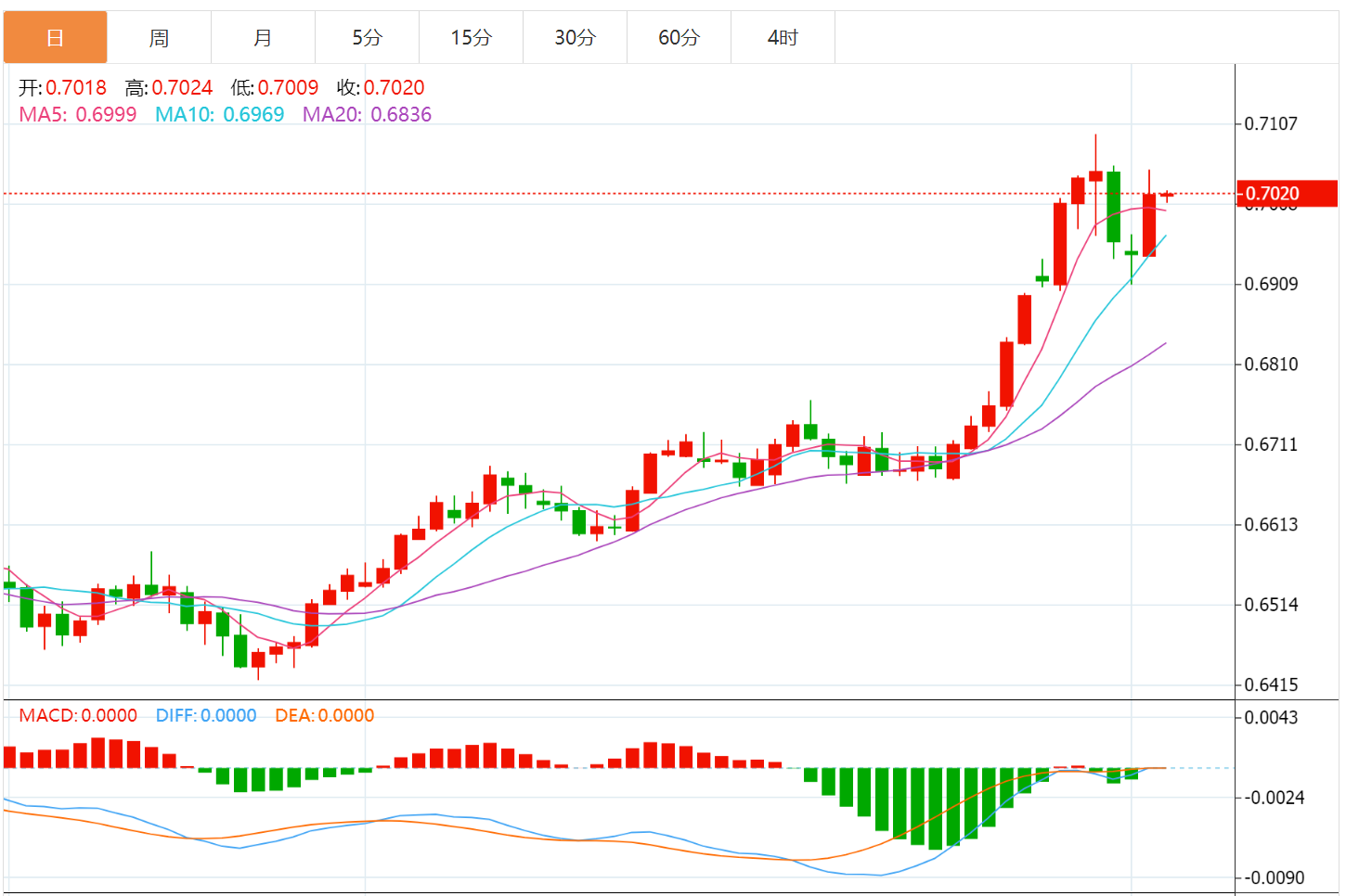 周三亚盘,澳元/美元徘徊于0.7020附近,澳元(AUD)在周二对美元(UD)表现强劲,此前澳大利亚储备银行(RA)宣布了广泛预期的加息,推动澳元在各个方面普遍走高。 市场基本面分析 澳元/美元交易在0.7011附近,RA一致投票将现金利率提高25个基点()至3.85%,这是自2023年以来的首次加息,政策制定者对