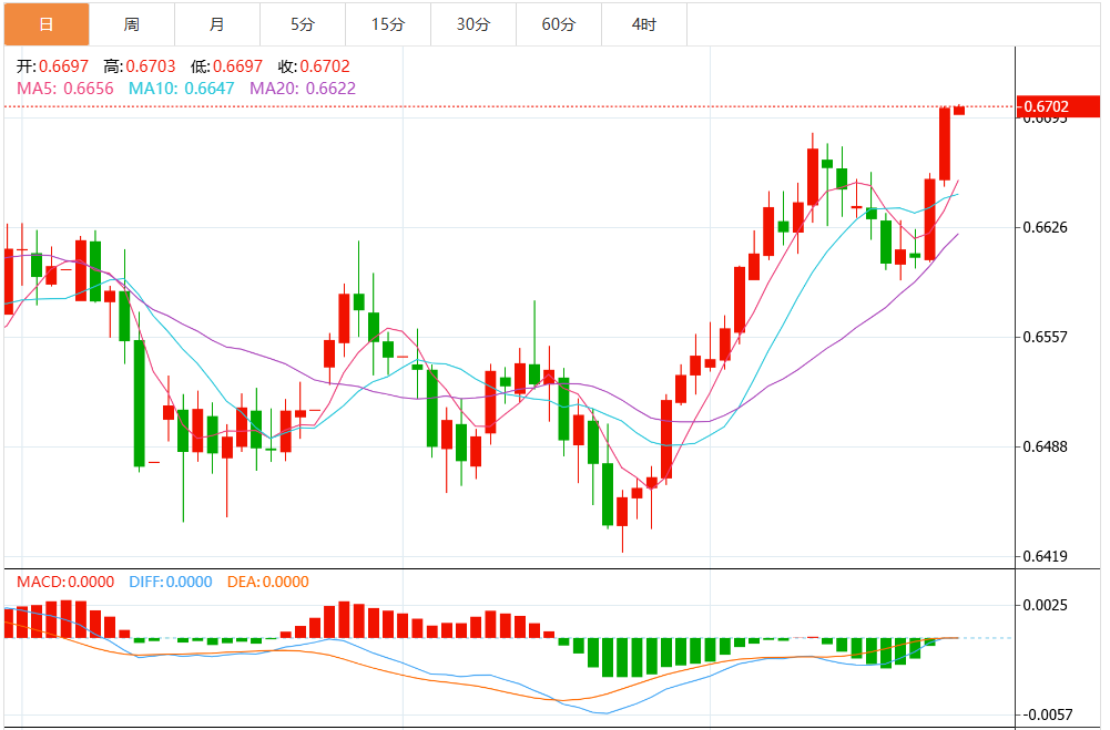 澳元/美元在周一欧洲交易时段回落至接近0.6700,早些时候曾触及一年多来的高点0.6727。由于澳元在经过数周的上涨后面临获利回吐,澳元对美元(UD)回吐了日内涨幅,而美元(UD)则保持相对平静。 在过去几周,澳元表现优于其他货币,因市场对澳大利亚储备银行(RA)可能在2026年加息的预期不断上升。RA的鹰派预期
