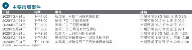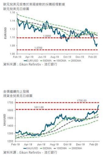 美国采购经理指数(PMI)逊于预期,以及市场对新型冠状病毒忧虑重燃都削弱了风险偏好情绪。美国不同地区发布的PMI数据反映当地服务业PMI出乎意料地有所减弱。美国30年期美国国债收益率亦下降至历史新低。