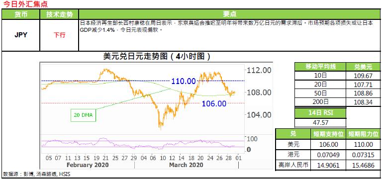 § 澳洲计划推出工资补贴方案,为受疫情影响的企业提供每名雇员每两星期最多1500 澳元的补贴,旨在减轻疫情对经济造成的打击。 同时,预期政府将为企业及个人提供租金援助,并放宽领取福利的限制。澳洲政府不断加码应对疫情举措,短期有助缓和市场对当地经济前景的忧虑情绪,支持澳元汇价靠稳于61 美仙以上水平。