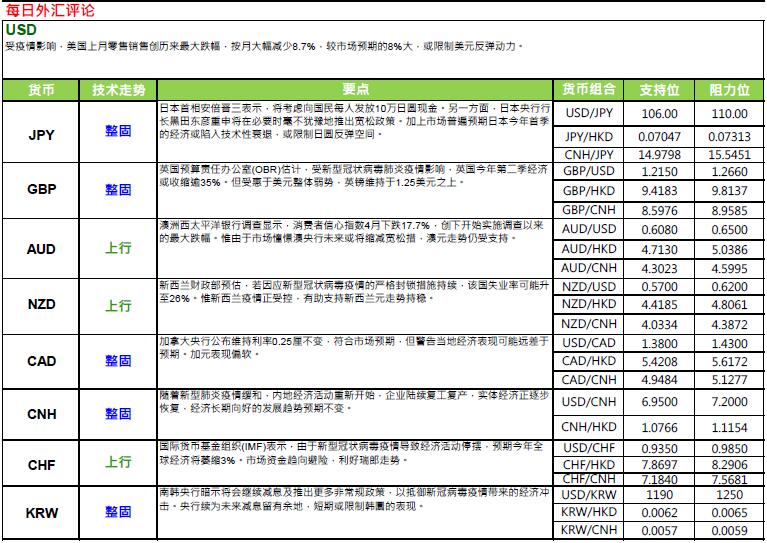 加628 万桶,远高于预期的143.7 万桶。美国原油库存激增,加剧市场对油供应过剩的担忧,拖累油价表现,惟需留意产油国下月起的减产行动,以及各国有意逐步复工复产,或将增加未来