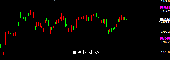 上周黄金的走势我们就不再赘述了,持续的1790-1817的箱体震荡符合预期并且截止到目前仍未结束,至于当前黄金走势观点,我们还是看图说话: 黄金,连续多个交易日围绕1790-1815区间震荡,所以区间尚未打破之际,操作上依然卡区间操作思路,对于行情,确实没太多好说的,震荡的行情,无非高抛低吸,等待破位择机跟