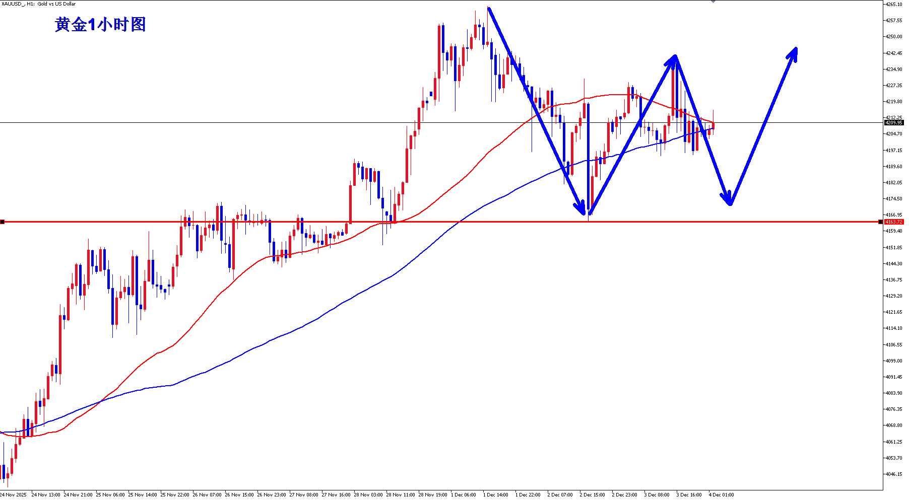 黄金1小时现在整体还是大区间震荡,下方首先关注4190附近支撑,如果黄金早盘回落4190附近支撑短线可能会有反弹,同时黄金重点关注4160-4170区域的支撑,黄金在美联储决议前还是有望再冲一波。