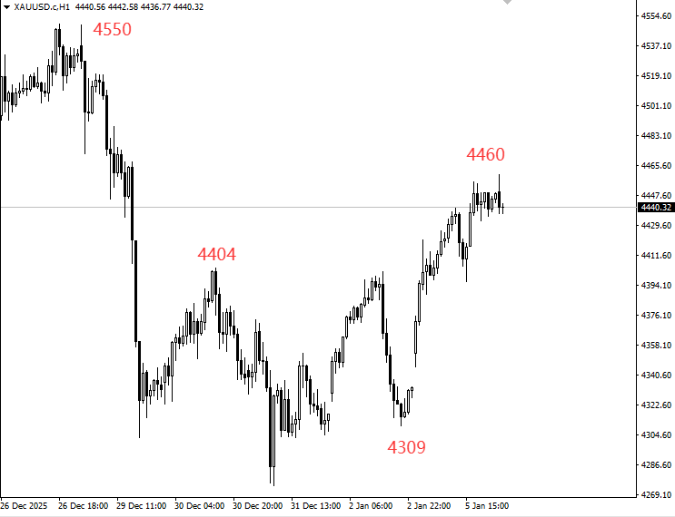 从价格轨迹来看,4405的突破成为多头启动的重要信号,冲高至4460后回落,属于趋势中的正常回调修正,并未破坏整体上行结构。