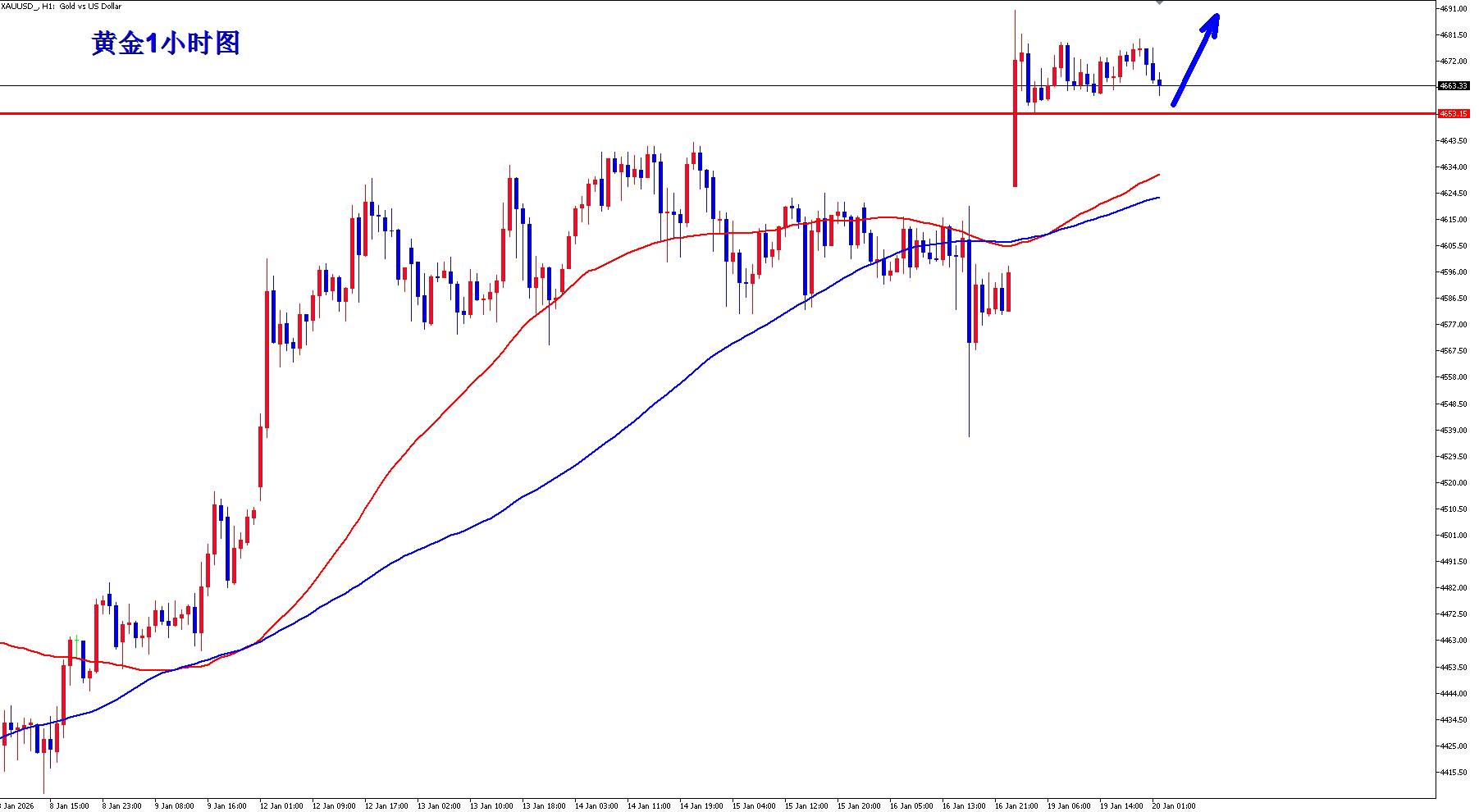 黄金1小时均线还是金叉向上的多头排列,黄金昨天横盘之后基本上企稳在4650上方,那么黄金短线在4650上方基本上已经企稳,今天早盘回落4650上方继续逢低多,黄金蓄势之后大概率还是将继续上涨,目前黄金牛市格局没有改变,距离历史新高也仅仅是一步之遥。