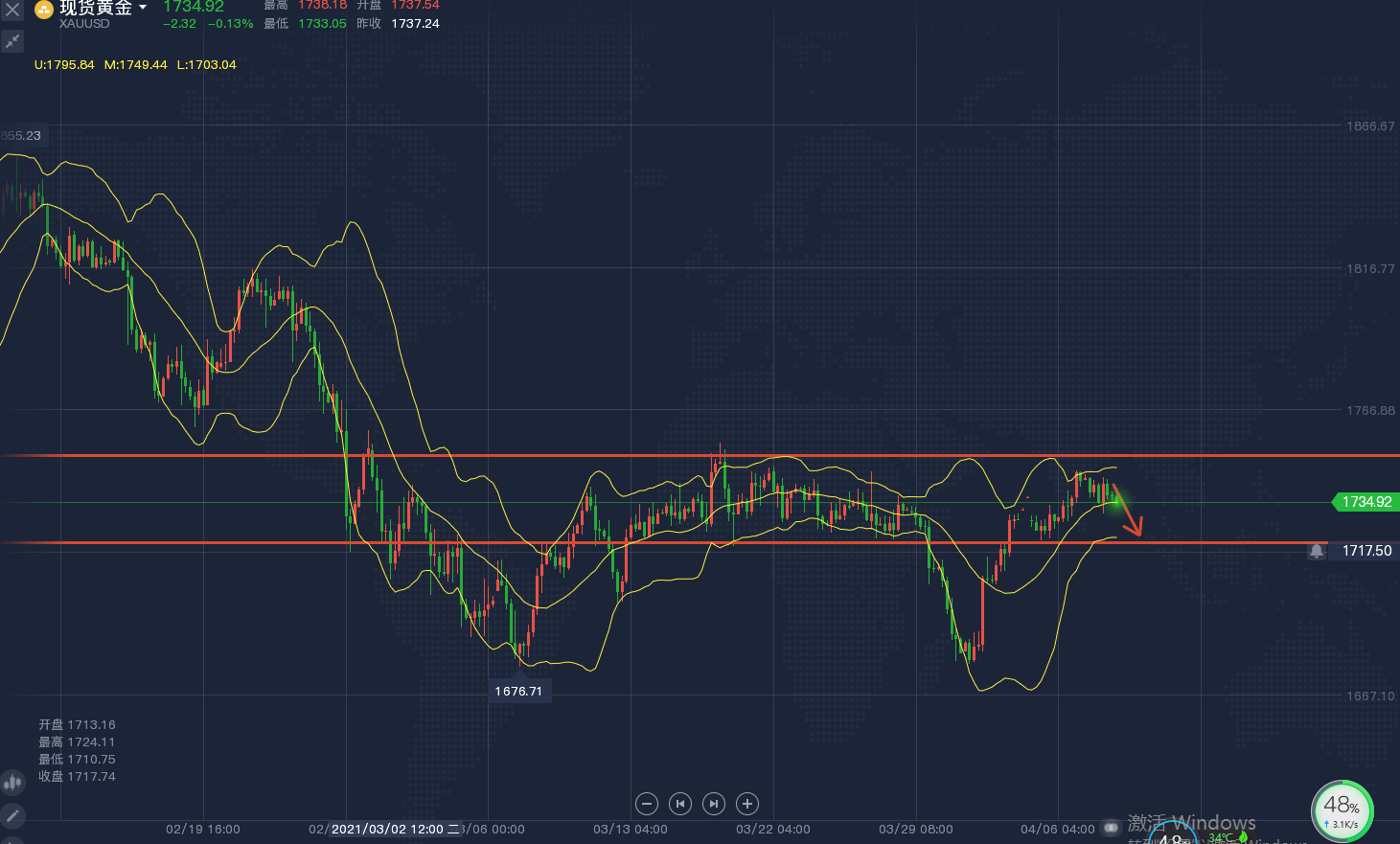 黄金方面,昨日黄金如预期震荡,探高不破高,最高触及1743一线承压回落,最低至1730附近,日线的布林带持续走平,从昨日收阴来看,短线有回调的需求。4小时,价格探高后陷入震荡整理,布林带三轨走平,结构上而言,还处于震荡区间拉锯,日内盘中主要关注下方支撑1720-1725一线,上方关注1740-1745一线阻力,在此区间未被突破之前,不奢望走出单边行情,操作思路上保持区间操作。