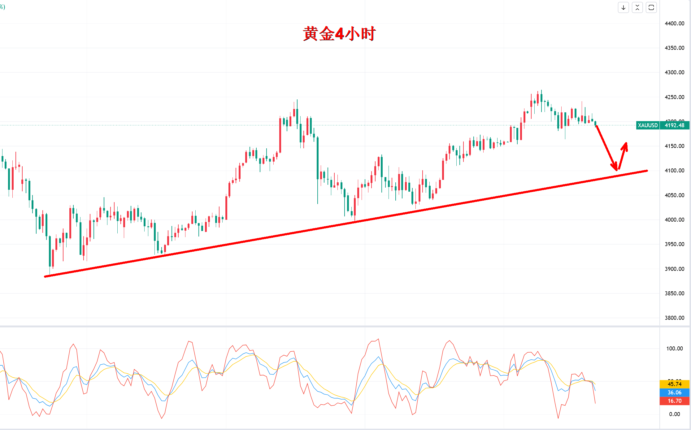 今天,大方向黄金仍然以调整为主,主要空的时间点在亚欧盘或美盘之后,美盘前减少动少的频率,美盘往往拉起来后再下跌,压力在4240-50美元,下面支撑4170和4150美元,找位置逢高空即可,我说的是当天,而不是未来。