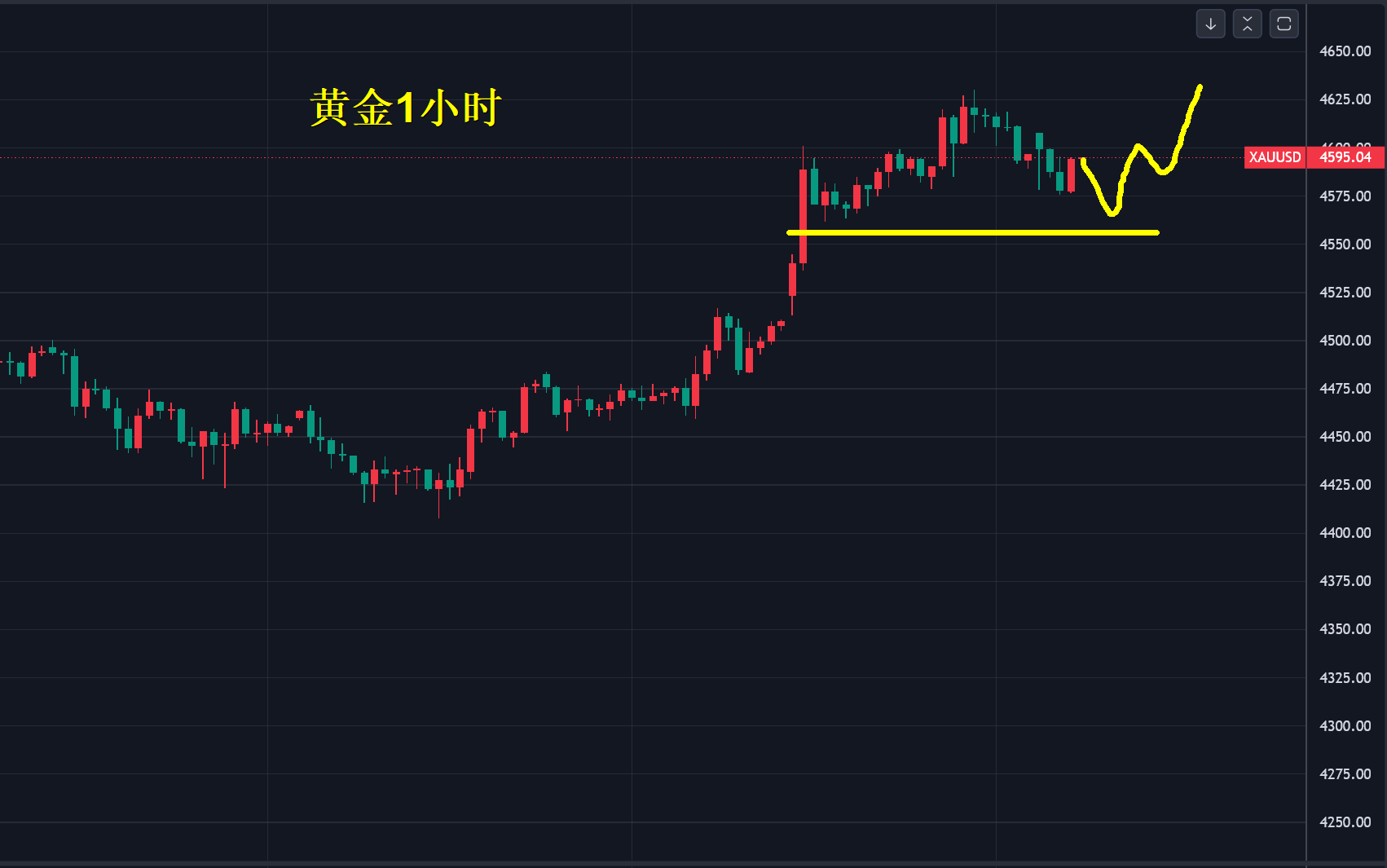 现在,金价回落后的关键取决于4450美元的支撑点,去年10月份高点位置被这次上涨击穿,回踩确认支撑点是否有效,抓自己看得懂的行情,做自己认知范围内的事,别人赚多少与你无关,错过了就等一次,错过不是损失,这里从来不缺机会,更不缺神话,稀缺的是留下来永远不下桌。