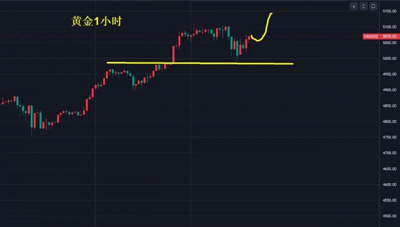 周一金价跳空高开至5090美元之上白银抵达110美元金银价格没有最高只有更高一次次打破市场认知上限欧美盘黄金表现相比白银有些弱金价完美回踩顶底转换5000美元.