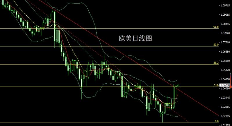 欧美市场昨日早盘开盘在1.04151的位置后行情先拉升给出1.04345的位置后行情快速回落,日线最低给到了1.03408的位置后行情受到日线级别不林中轨支撑强势拉升,日线最高触及到了1.04352的位置后行情整理,日线最终收线在了1.04233的位置后行情以一根下影线极长的启明星形态收线,而这样的形态收尾后,今日的行情回踩延续多,点位上,昨日1.03550的多减仓后止损跟进在1.03600,今日1.03850多止损1.03650,目标看1.04350,破位看1.04600和1.04800.