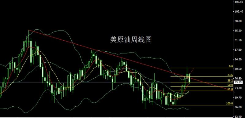 美原油市场上周开盘在78.47的位置后行情先拉升给出79的周线高点后行情一路震荡回落,周线最低给到了74.94的位置后行情整理,周线最终收线在了75.52的位置后,周线以一根上下影线等长的大阴线收线,而这样的形态收尾后,本周市场有继续看空需求,点位上,上周五76.2的空减仓后止损跟进在76.8持有,今日76.3空止损76.8,下方目标看74.8和74.2和73.9支撑点。