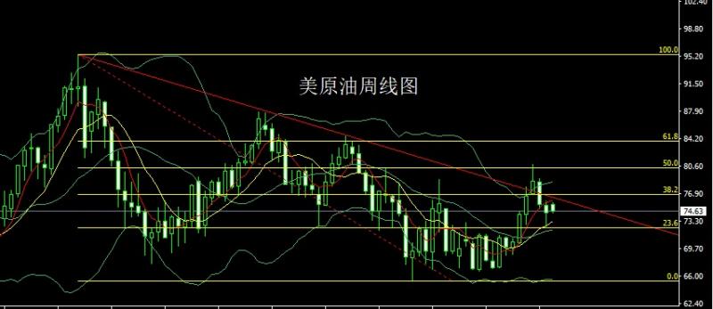 美原油市场上周低开在75.34的位置后行情回补缺口给出76的位置后行情快速回落,周线最低给到了72.57的位置后行情尾盘拉升,周线最终收线在了74.46的位置后行情以一根下影线很长的锤头形态收线,而这样的形态收尾后,今日的行情高开给出73.9多止损73.4,目标看75和75.7和76.