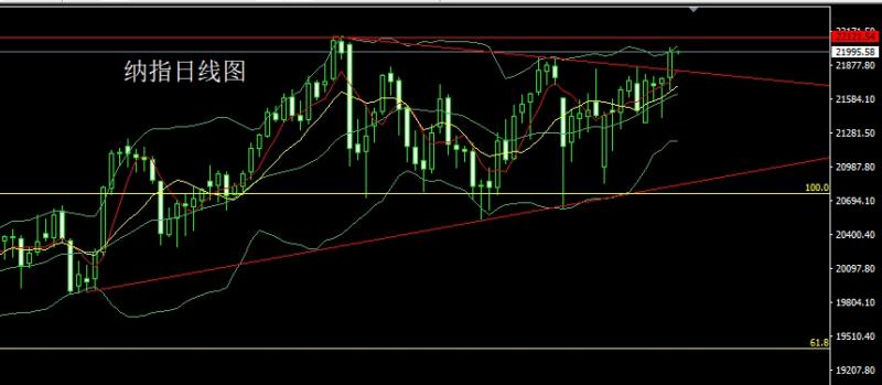 纳指市场昨日开盘在21765.68的位置后行情先回落,热线最低给到了21655.22的位置后行情震荡拉升,破位本轮三角整理上轨后行情加速拉升,日线最高触及到了22033.54的位置后行情整理,日线最终收线在了21989.36的位置后行情以一根下影线很长的大阳线收线,而这样的形态收尾后,今日21900多止损21840,目标看22050,破位看22100和22200.