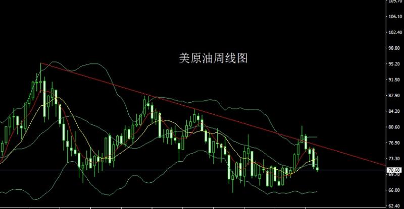 美原油市场上周低开在71.18的位置后行情强势拉升,周线最高触及到了73.93的位置后行情快速回落,周线最低给到了70.33的位置后整理周线最终收线在了70.68的位置后,周线以一根上影线极长的倒锤头形态收线,而这样的形态收尾后,今日71.5空止损72,目标看70.3和69.5-69.