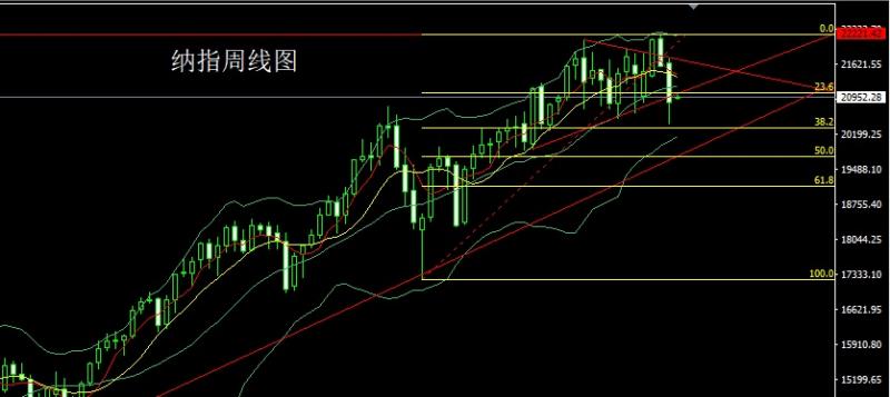 纳指市场上周开盘在21639.63的位置后行情小幅拉升给出21743.96的位置后行情强势回落,周线最低给到了20398.47的位置后尾盘超跌反弹,周线最终收线在了20852.42的位置后行情以一根下影线很长的大阴线收线,而这样的形态收尾后,本周20650多止损20600,目标看20900和21000和21100和21150压力离场准备空。