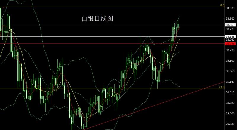 白银:上周33的多减仓后止损跟进在33.2,今日33.7多止损33.5,目标看34和34.25,破位看34.5-34.65.