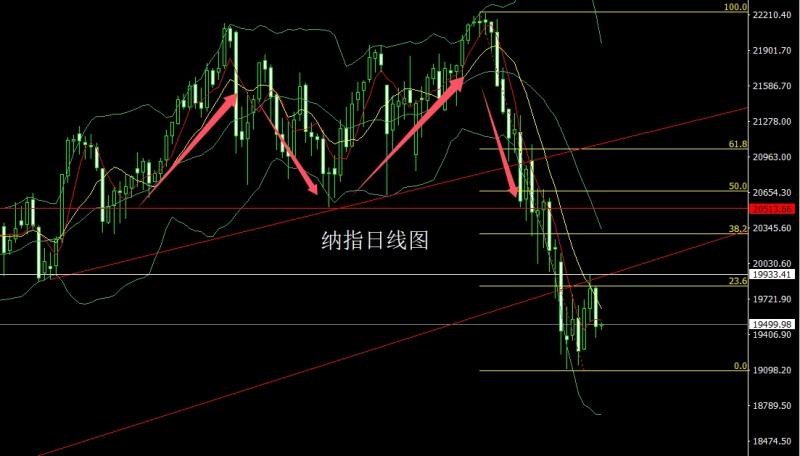 纳指市场昨日开盘在19813.04的位置后行情先拉升给出19838.96的位置后行情震荡回落,日线最低给到了19379.19的位置后行情整理,日线最终收线在了19477.71的位置后行情以一根下影线很长的大阴线收线,而这样的形态收尾后,今日19700空止损19760,目标看19450和19379,跌破看19320和19250.