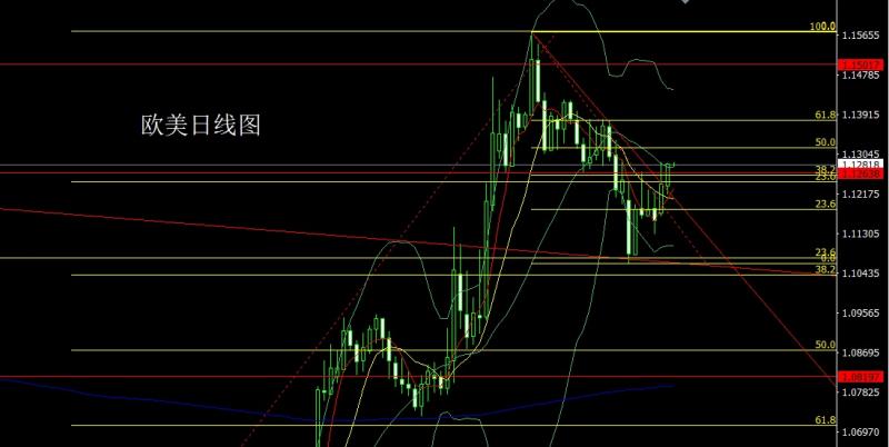 欧美市场昨日开盘在1.12364的位置后行情先回落给出日线低点1.12169的位置后行情震荡拉升,日线最高触及到了1.12861的位置后行情整理,日线最终收线在了1.12824的位置后行情以一根下影线很长的大阳线收线,而这样的形态收尾后,今日1.12550多止损112350,目标看1.12850和1.13000和1.13200-1.13400.
