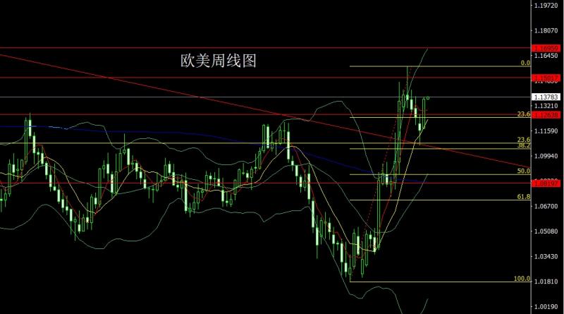 欧美市场上周开盘在1.11758的位置后行情先回落给出1.11694的位置后行情强势拉升,周线最高触及到了1.13756的位置后行情整理,周线最终收线在了1.13639的位置后行情以一根上下影线等长的大阳线收线,而这样的形态收尾后,本周1.13100多止损1.12900,目标看1.13750.破位看1.14000和1.14200和1.14500.