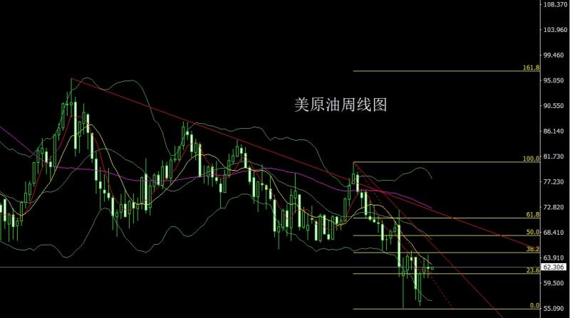 美原油市场上周开盘在62.31的位置后行情回踩61.36的位置后行情快速拉升,周线最高触及到了64.57的位置后行情冲高回落,周线最低给到了60.33的位置后行情整理,周线最终收线在了62.07的位置后行情以一根上影线稍长于下影线的纺锤形态收线,而这样的形态收尾后,今日61.2多止损60.6,目标看62.3和62.8和63.2-63.5.